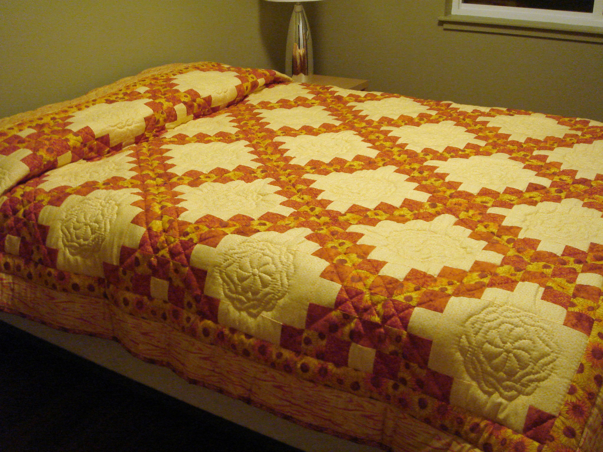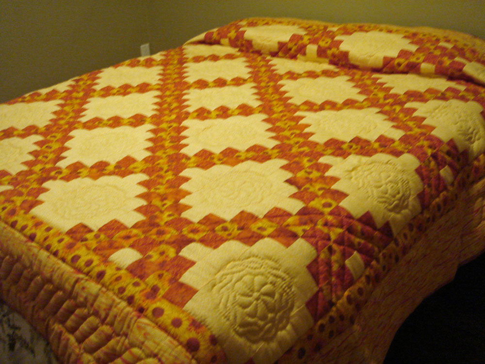 This “Sunflower” quilt would make a cherished gift or you could use it to brighten up your guest room.